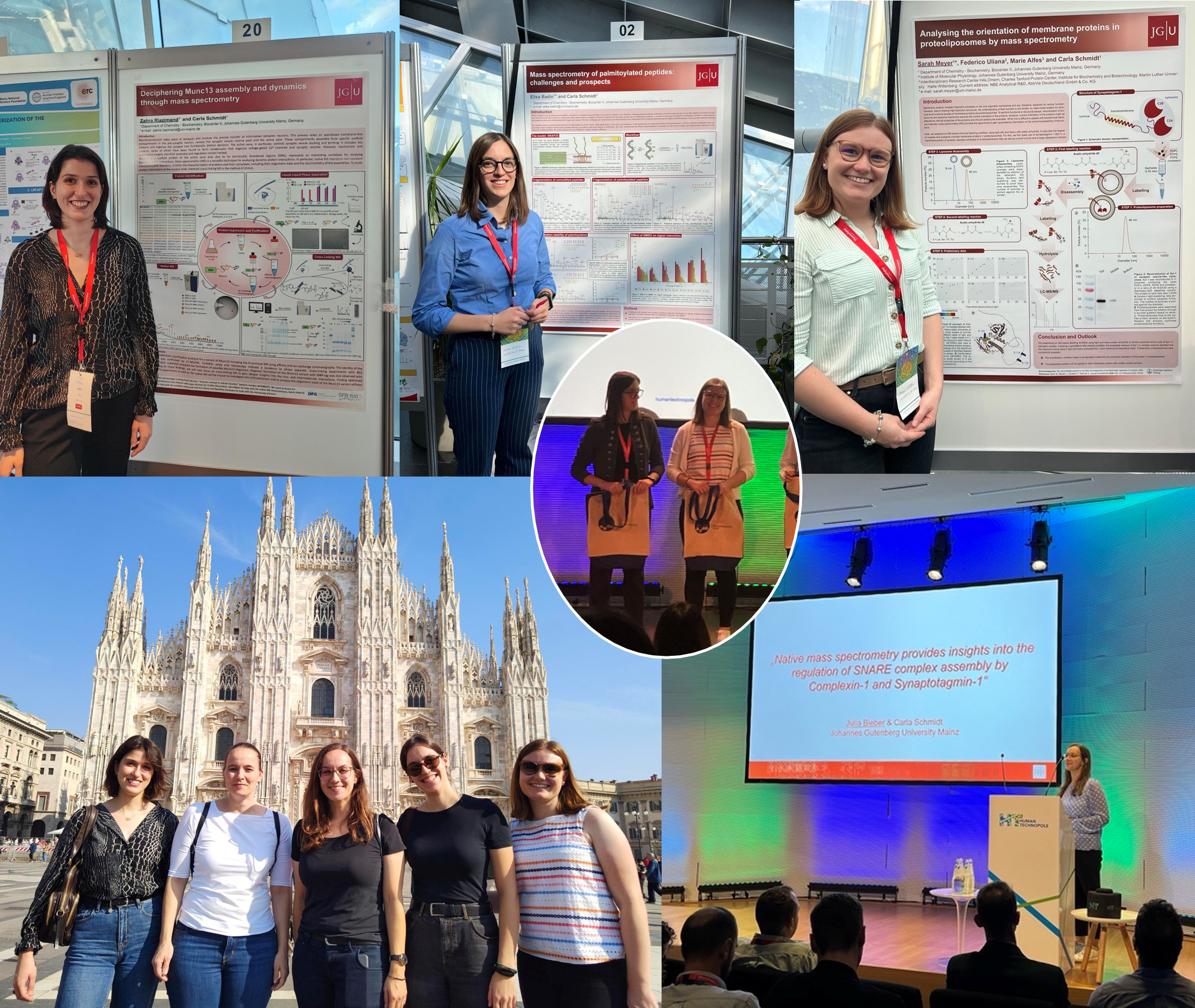 The Symposium on Structural Proteomics 2025 took place in Milan, Italy... Zahra, Carla, Julia, Elisa and Sarah went and participated in the conference, which is dedicated to all structural mass spectrometry techniques as well as computational modelling. Zahra, Elisa and Sarah presented their projects on posters and Julia gave a talk in the native mass spectrometry session. Our work was highly rewarded with two (out of three) poster prizes! Congratulations to Sarah and Elisa!!